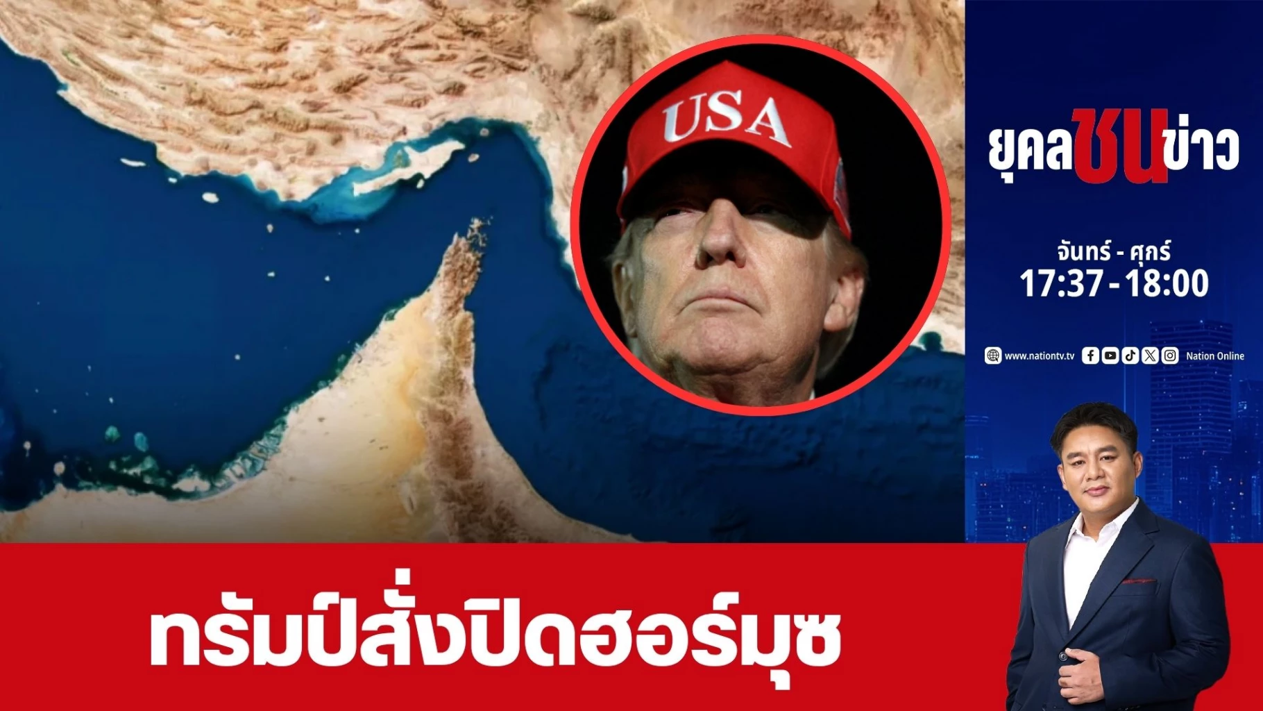 "ทรัมป์" สั่งการกองทัพเรือสหรัฐฯ สั่งปิดล้อมช่องแคบฮอร์มุซ ไม่ให้เรือที่จะไปและกลับจากอิหร่านแล่นผ่าน หลังการเจรจาสันติภาพ ระหว่างสหรัฐฯ และอิหร่าน สิ้นสุดลงแบบไร้ข้อตกลง พร้อมประณามอิหร่าน ที่ปิดกั้นเส้นทางเดินเรือทำเศรษฐกิจโลกมีปัญหา