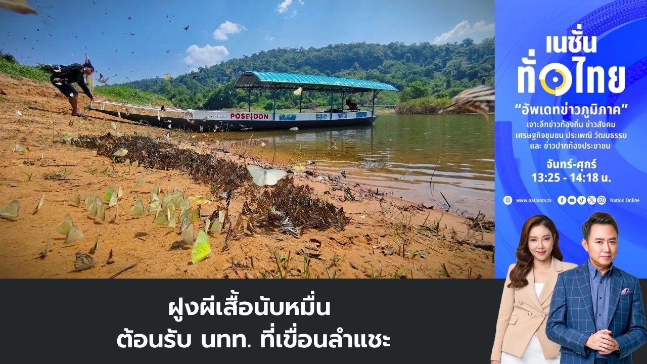 พาไปนครราชสีมา นักท่องเที่ยวแห่ชม “ฝูงผีเสื้อนีบหมื่นตัว” ที่แก่งวังวน–น้ำตกวังเต่า แหล่งต้นน้ำเหนือเขื่อนลำแชะ จังหวัดนครราชสีมา ผีเสื้อกว่า 20 สายพันธุ์พากันออกจากป่ามาดูดแร่ธาตุตามหาดทรายและโขดหินริมลำธาร สร้างภาพธรรมชาติสุดตระการตา ดึงดูดนักท่องเที่ยวมาเที่ยวพักผ่อน