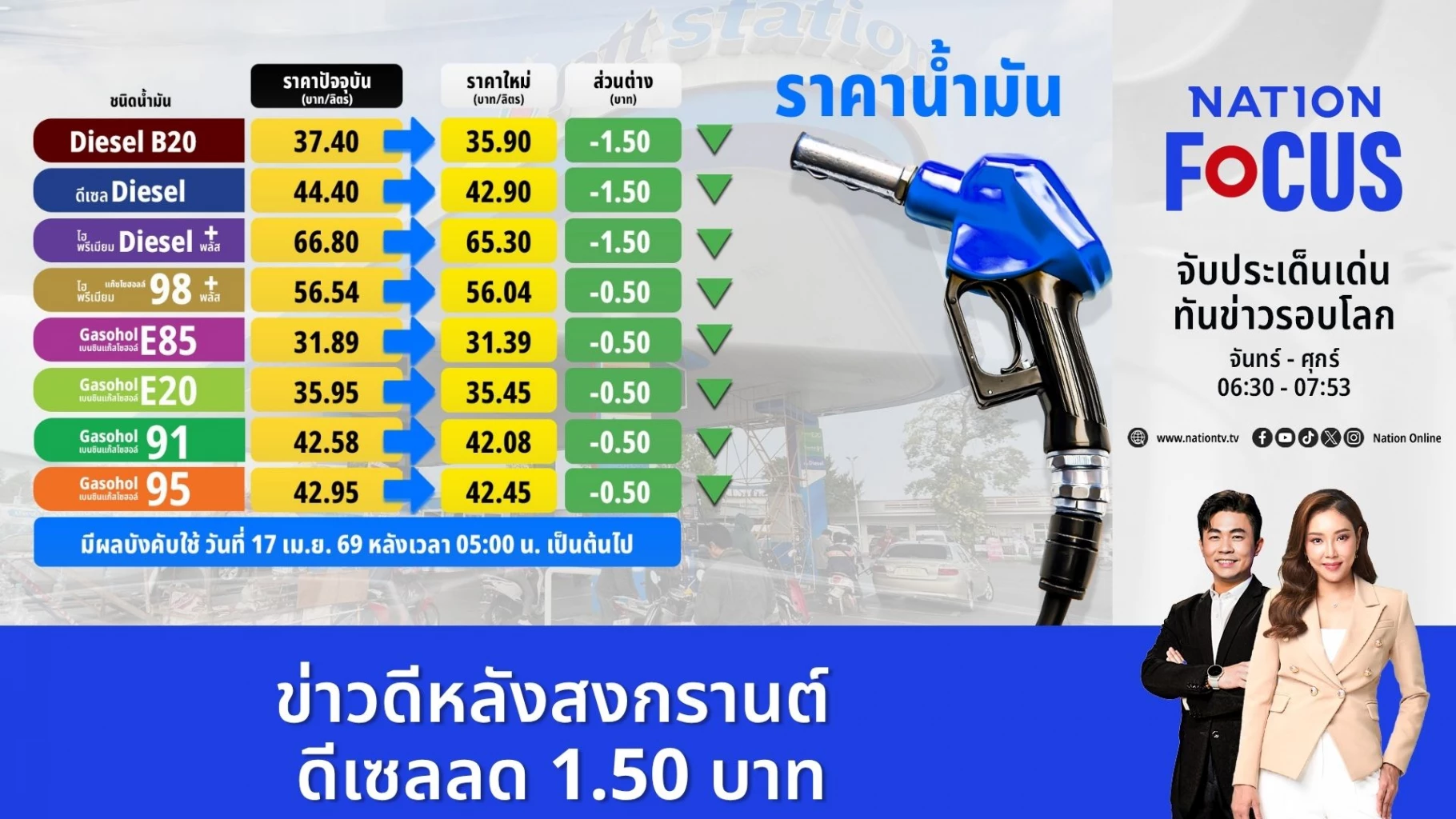 ข่าวดีหลังสงกรานต์ ดีเซลลด 1.50 บาท | เนชั่นโฟกัส | 17 เม.ย. 69 | PART 1