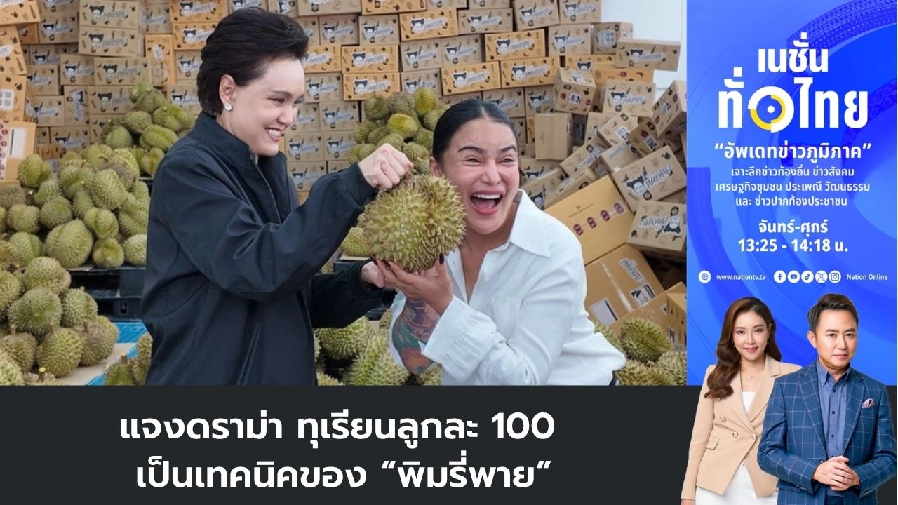 นางศุภจี สุธรรมพันธุ์ รองนายกรัฐมนตรี และ รมว.พาณิชย์ สยบดราม่าอินฟลูเอนเซอร์ไลฟ์ขายทุเรียนลูกละ 100 บาท ชี้เป็นเทคนิคการตลาดและโปรโมชั่นส่วนตัวของ "พิมรี่พาย" ที่ต้องการช่วยกระจายสินค้า ขอให้รอดูเงื่อนไขและขนาดลูกจริงประกอบ ยันพาณิชย์ไม่มีส่วนเกี่ยวข้องกับการตั้งราคานี้ ขณะที่ภาพรวมตลาดทุเรียนปี 2569 ผลผลิตออกมากกว่าเดิม 33% กระทรวงฯ จึงเร่งทำตลาดเชิงรุกทั้งในและต่างประเทศ พร้อมใช้ Live Commerce ช่วยกระจายสินค้าสู่ผู้บริโภคโดยตรง เผยราคาทุเรียนเกรด A-B ปัจจุบันยังคงดีเยี่ยมอยู่ที่ 135-150 บาทต่อกิโลกรัม ส่วนเกรดอื่นๆ เป็นไปตามกลไกตลาด มั่นใจไม่มีปัญหา "ไม่ตรงปก" เพราะเป็นประเด็นที่คนทั้งประเทศจับตามอง